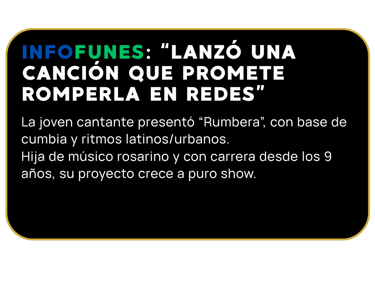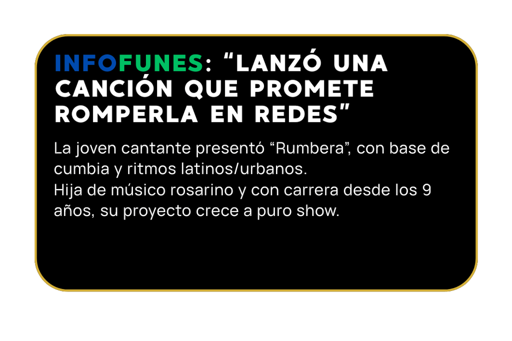 Con más de dos años de carrera solista, cinco temas propios registrados y una banda de seis músicos que la acompaña, construyó un proyecto sólido que combina lo mejor de la cumbia pop, el cuarteto y el reggaetón.
