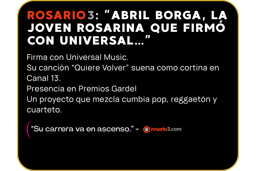 Hoy, Abril Borga se prepara para llevar su propuesta a cada rincón del mundo, con un objetivo enfocado y claro: dejar huella en la nueva generación de la música.